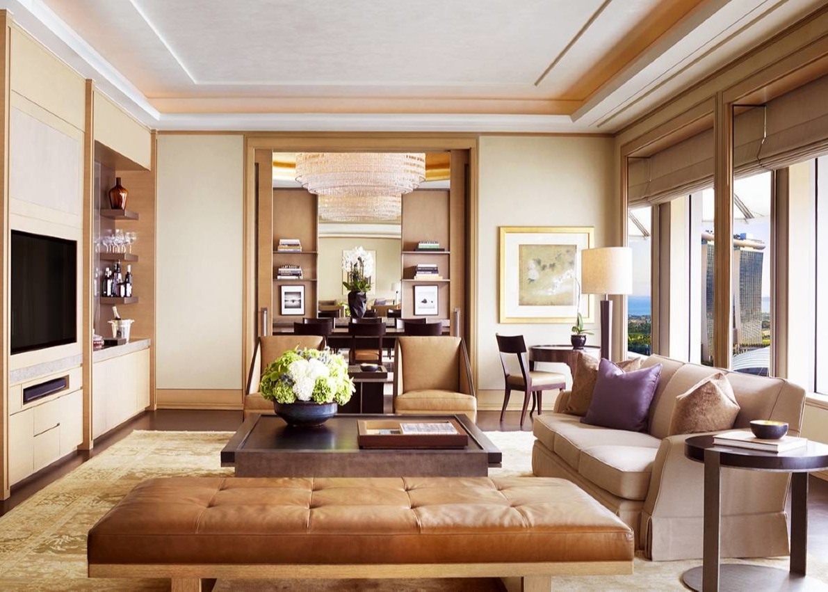 Mobília pública da área (que inclui a entrada, a sala de estar, o restaurante, a barra, a sala de reunião, o corredor, etc.)