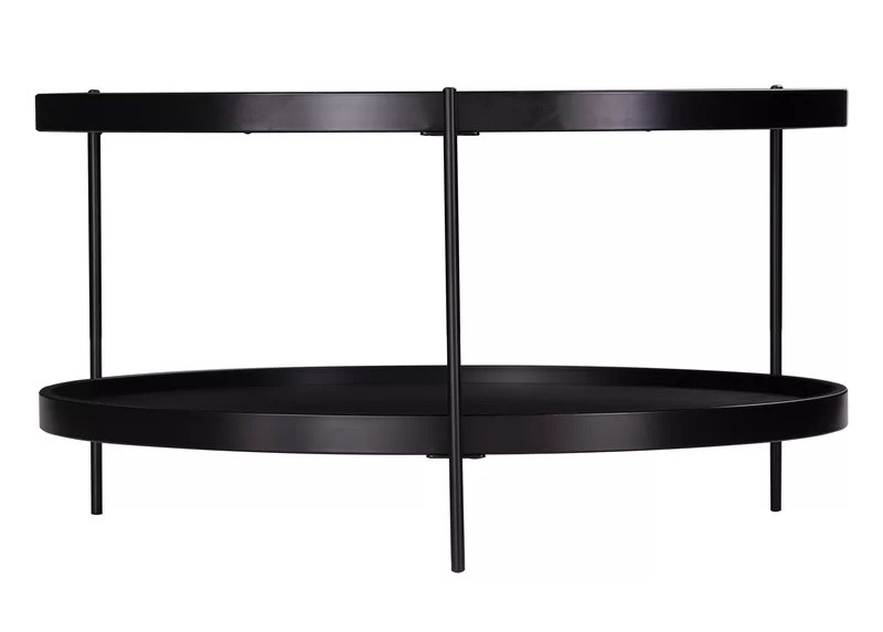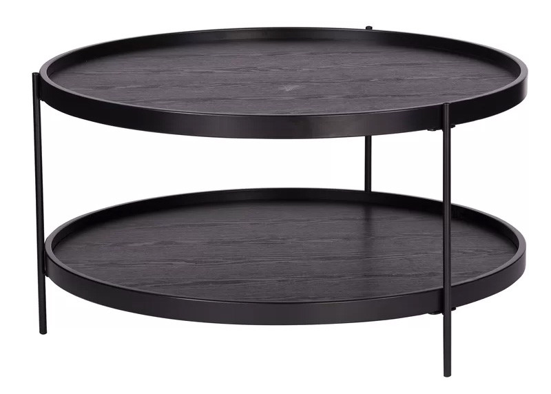 O minimalismo vai país com esta mesa de centro de dois níveis. Arredonde acima o armazenamento e o estilo com um tabletop e uma exposição espaçosos
